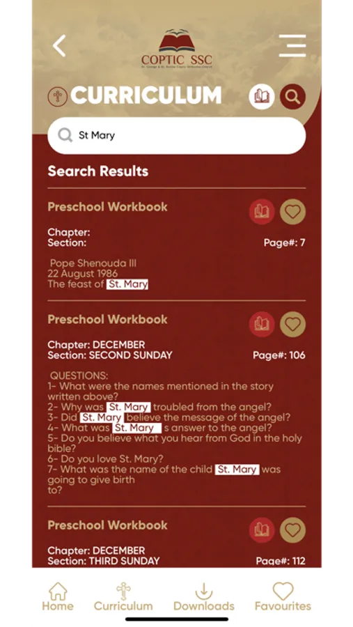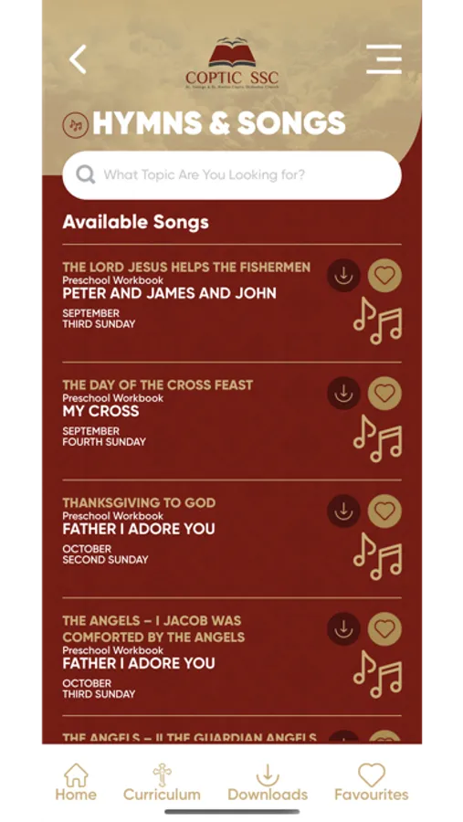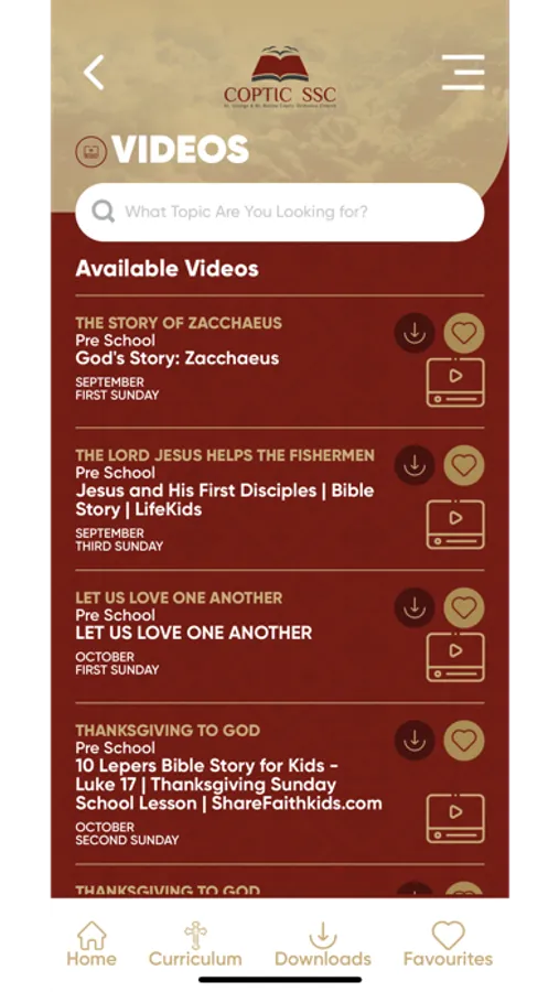 For each age group, a curriculum has been carefully designed to cover psychologically relevant themes discussing Scripture, Dogma, Spirituality, Church Rituals and Morals. Additionally, the curriculum has been designed to discuss topics corresponding to the time of fasts/feasts in the Calendar which shift every year. The calendar selection feature allows users to utilize the correct curriculum depending on the current year as well as being able to select curriculums of other years.