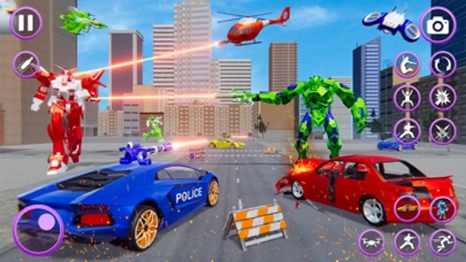 Experience the real action, non-stop fighting, transformation, and smashing rivals in the US police robot transforming simulator. Never spare the lives of evils in the transforming car robot games. Enter into a thrilling iron robot war of the transforming robot car games and have unlimited fun. Let’s complete different challenging tasks and missions in interesting levels of flying robot transforming games 3D. Different power buttons, weapons, and skills to destroy the enemy & be the ultimate fighter of police car robot transform games 3D. So get ready to smash and fight in robot transformation games 3D. The thrilling iron robot battles give you a chance to feel the iron power and use your extreme muscular strength to defeat enemies in US police robot fighting games. This is your job to save your city by playing the iron robot fighting action games.