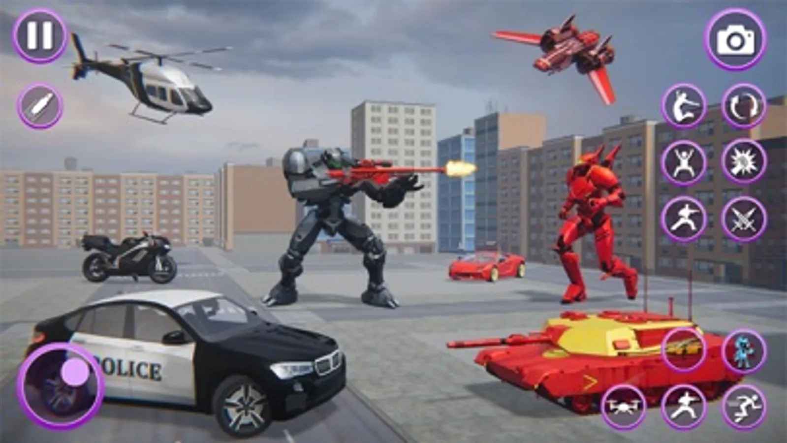 Smooth & simple controls of the flying robot car transforming simulator give you thrilling action of extreme fighting. Target your rivals & let’s destroy, break, throw, and smash with advanced powers in US police robot games 3D. Enjoy the police transforming robot car games with HD visuals and realistic animation of extreme fighting actions. Play in a massive open-world city environment of US police car robot transforming games. Enjoy police robot transformation games and unlock different types of powerful iron fighters. Start a real iron robot war by becoming the true transforming robot police in robot fighting games 3D. Try to complete different extreme tasks of the robot transform games to unlock the non-stop fighting thrill. Let’s knock down enemies in an action-packed fight to complete various tasks in iron robot fighting action games.