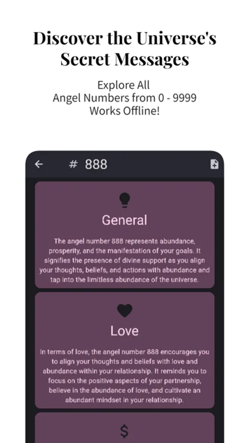We prioritize your privacy. All your personal data, including your journal entries and angel number calculations, are stored securely on your phone and never leave your device. Furthermore, "Your Spiritual Companion" is fully functional offline. You can access the angel numbers guide, and spirit animal encyclopedia, and use all the features of the app without requiring an internet connection. This ensures your spiritual exploration is uninterrupted, no matter where you are.