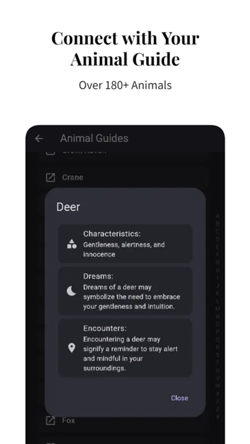 In the "Spirit Animals" section, explore over 180 spirit animals, delve into the significance of each, and unravel their profound spiritual messages. Whether you are looking for a dream meaning, encounter interpretation, or simply understanding the characteristic of your spirit animal, our guide is there for you.