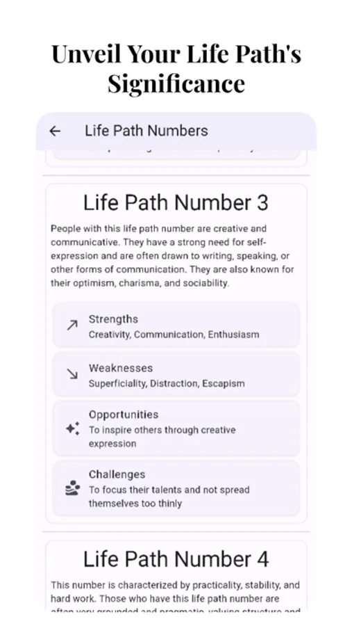 The "Life Path Numbers" feature offers insight into your unique life trajectory based on numerology. Find out your life path number, unravel its meaning, and understand how it shapes your personal journey and the choices you make.