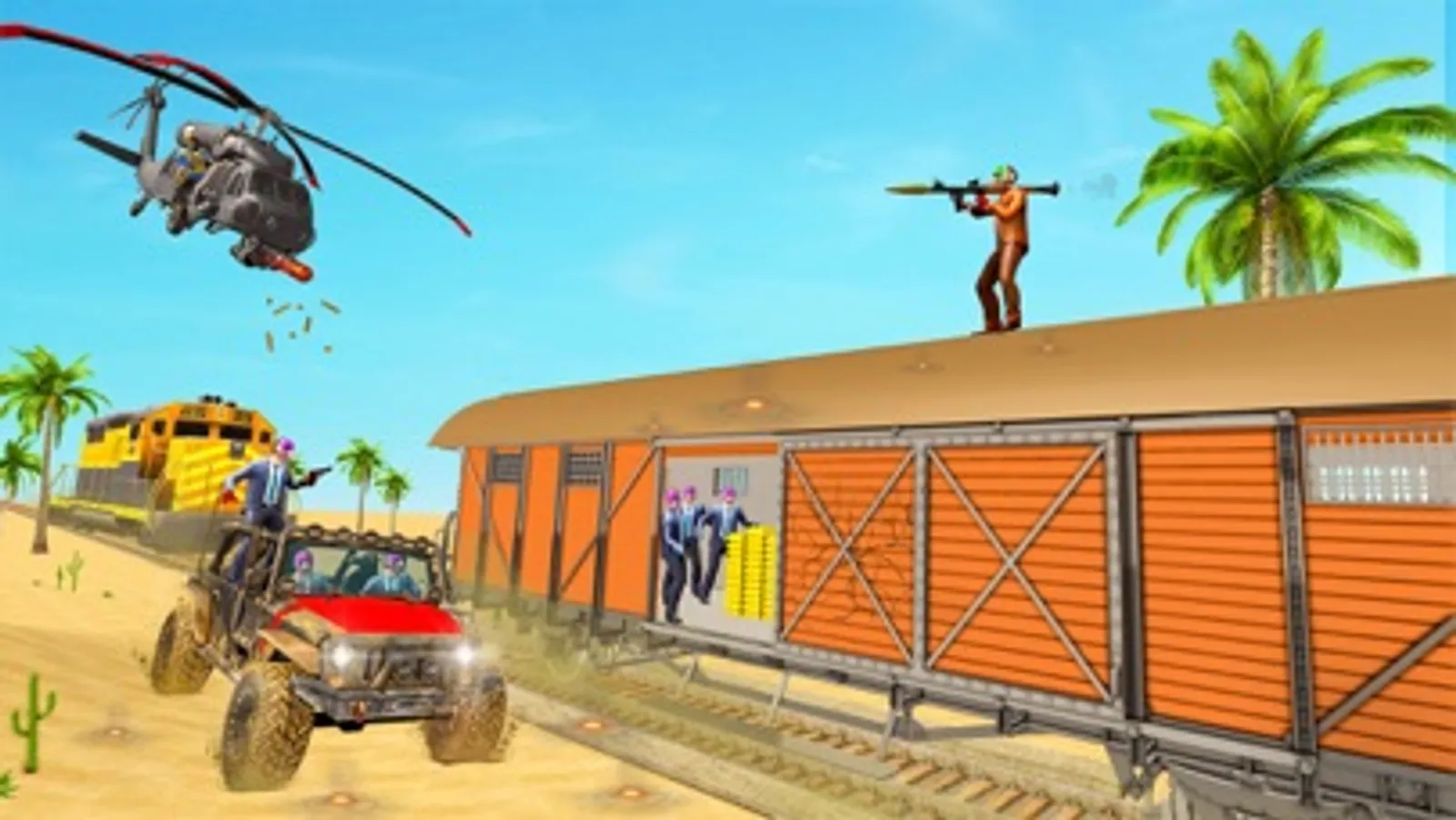 Diverse Playstyles: "The Great Gold Heist" caters to different playstyles, allowing players to choose between a direct approach or a more covert approach. Go in guns blazing, wreaking havoc and causing chaos, or use your wit and cunning to remain undetected, disabling security systems and silently neutralizing guards. Dynamic and challenging gameplay: Each mission will present new obstacles and challenges, requiring you to adapt your tactics on the fly. Encounter armed guards, trained marshals, and skilled lawmen who will stop at nothing to protect the gold. Use stealth, distractions, and well-timed actions to overcome these obstacles and stay one step ahead of the law. Plan and Execute the Perfect Heist: As the leader of a gang of outlaws, you'll meticulously plan every aspect of the robbery, from scouting the target train to coordinating your crew's actions. Take advantage of the train's layout, passenger positions, and security systems to devise the most effective strategy. The Great Gold Heist" is an action-packed, immersive video game that puts players in the heart of a thrilling train robbery set in the Wild West era. Prepare to step into the shoes of a notorious outlaw and mastermind behind the most audacious gold heist the frontier has ever seen. The game combines elements of stealth, strategy, and intense gunfights, offering players an adrenaline-fueled experience that will test their wit, reflexes, and resourcefulness. Diverse Playstyles: "The Great Gold Heist" caters to different playstyles, allowing players to choose between a direct approach or a more covert approach. Go in guns blazing, wreaking havoc and causing chaos, or use your wit and cunning to remain undetected, disabling security systems and silently neutralizing guards. Upgrade and customize your gang: Earn money from successful heists to upgrade your gang's abilities and equipment. Unlock new weapons, gadgets, and skills to enhance your crew's efficiency and increase your chances of pulling off bigger, riskier heists.