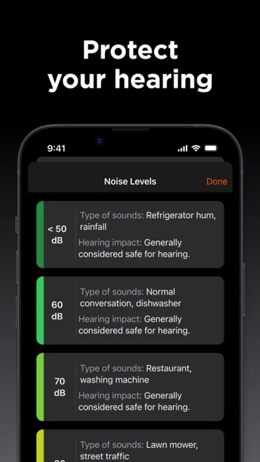 Helping you keep your hearing safe wherever you are, this easy-to-use app allows you to: