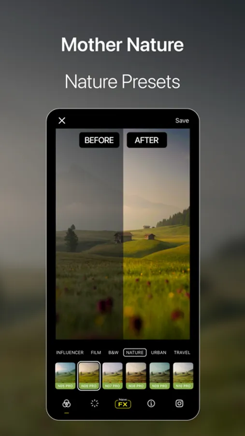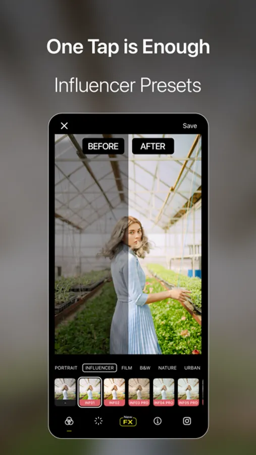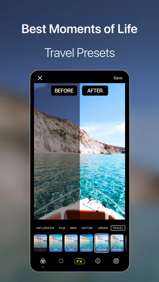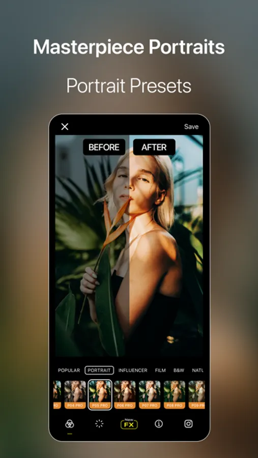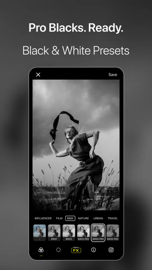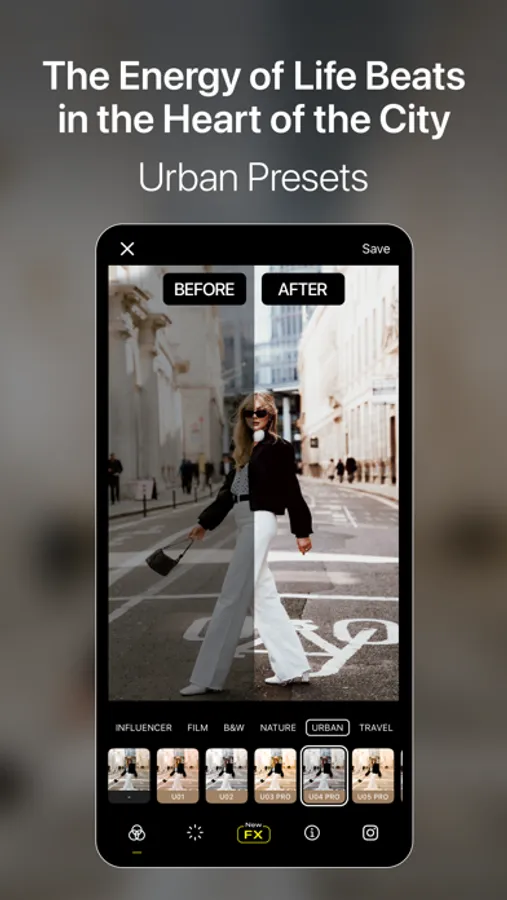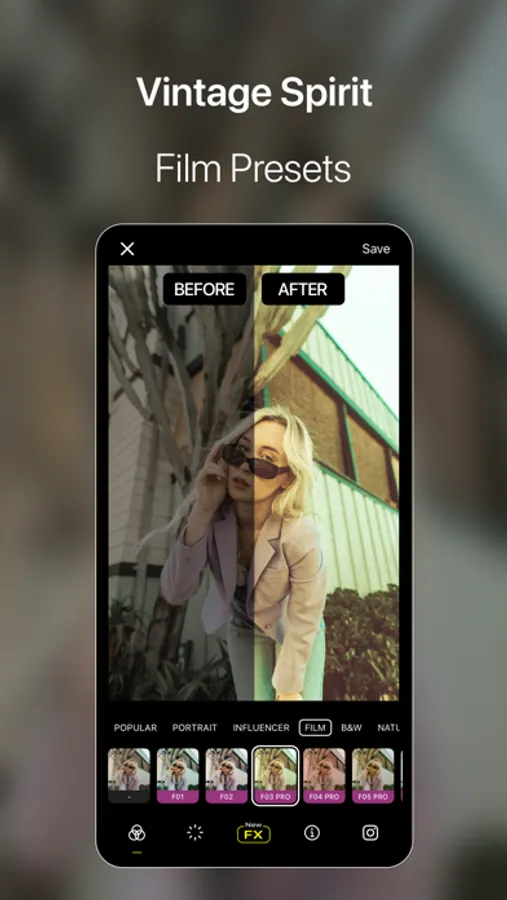 Specifically tailored to portrait, influencer, film, black and white, nature, urban, and travel categories, the color filters of Visual LabX help you capture every moment with the right mood. The extensive filter options of Visual LabX allow you to edit your photos professionally. Highlight your photos with a distinct film-like feel, captivating black and white effects, vibrant color palettes, and natural touches.