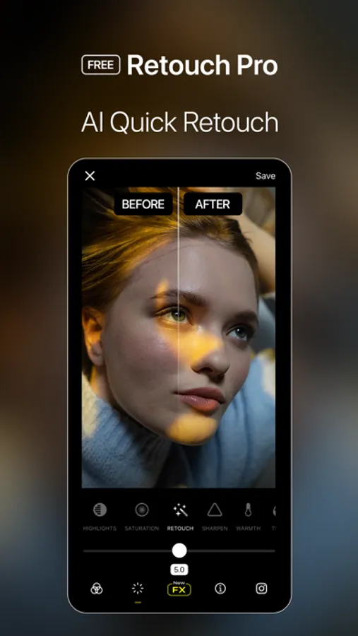 Premium-quality filters are among the key features of Visual LabX. Visual LabX has too many free photo editing tools. Free Retouch Pro tool helps you achieve a perfect skin edit. Our retouch tool detects your face and body with the help of AI and you can edit your face and body smoothly. With this combination, you can professionally edit your photos and leave your signature in every frame.