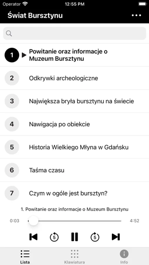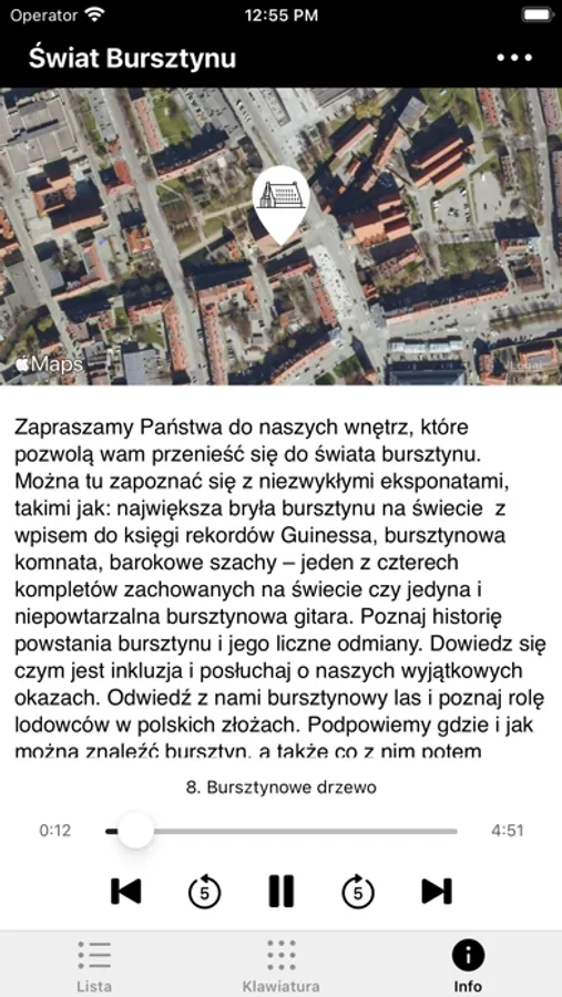 Zapraszamy Państwa do naszych wnętrz, które pozwolą wam przenieść się do świata bursztynu. Można tu zapoznać się z niezwykłymi eksponatami, takimi jak: największa bryła bursztynu na świecie z wpisem do księgi rekordów Guinessa, bursztynowa komnata, barokowe szachy – jeden z czterech kompletów zachowanych na świecie czy jedyna i niepowtarzalna bursztynowa gitara. Poznaj historię powstania bursztynu i jego liczne odmiany. Dowiedz się czym jest inkluzja i posłuchaj o naszych wyjątkowych okazach. Odwiedź z nami bursztynowy las i poznaj rolę lodowców w polskich złożach. Podpowiemy gdzie i jak można znaleźć bursztyn, a także co z nim potem zrobić. Opowiemy do czego wykorzystywali go nasi przodkowie od pradziejów, przez okres średniowiecza, złoty okres bursztynnictwa gdańskiego aż po współczesne dizajnerskie przedmioty.