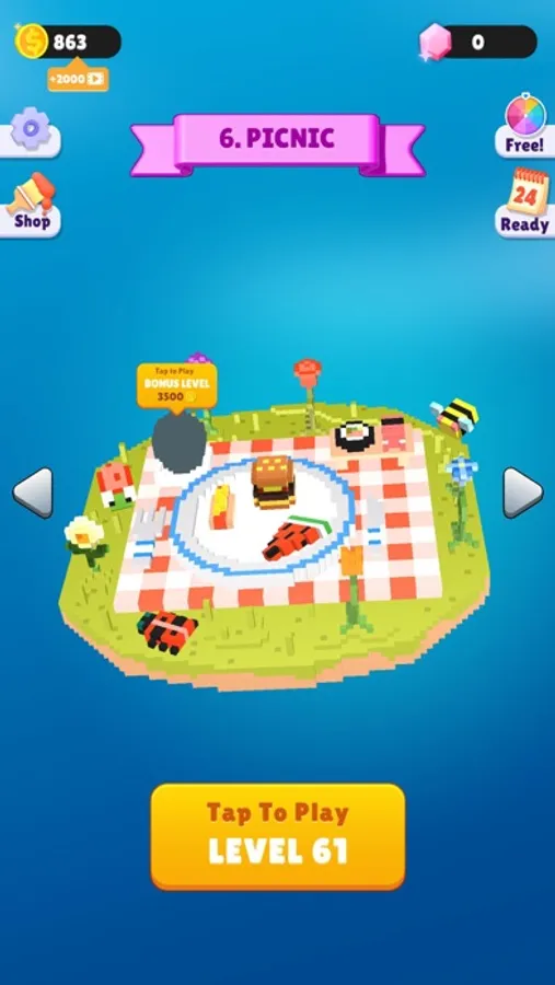 Tap the blocks to make them tap away and clear the screen to reveal the mysterious objects hidden in the middle.