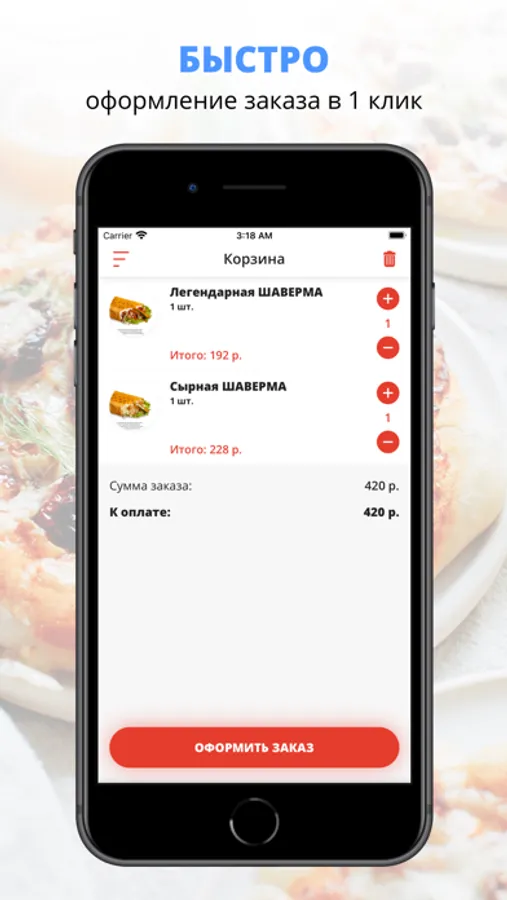 Скачивайте наше приложение, оформляйте заказ и наслаждайтесь любимой едой, где бы Вы ни были! Приятного аппетита!