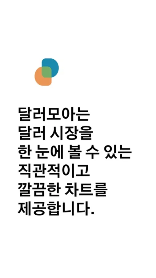달러모아는, 달러 시장을 한눈에 볼 수 있는 직관적이고 깔끔한 차트를 제공하는 앱입니다.