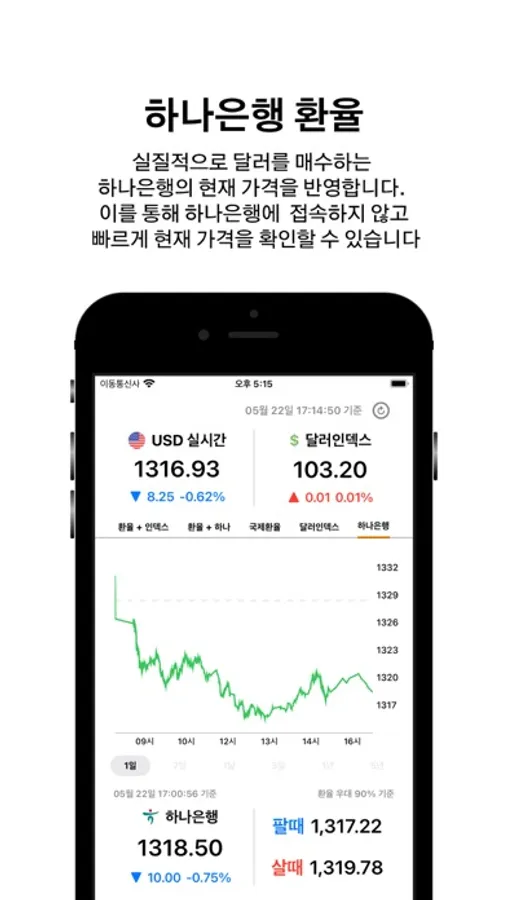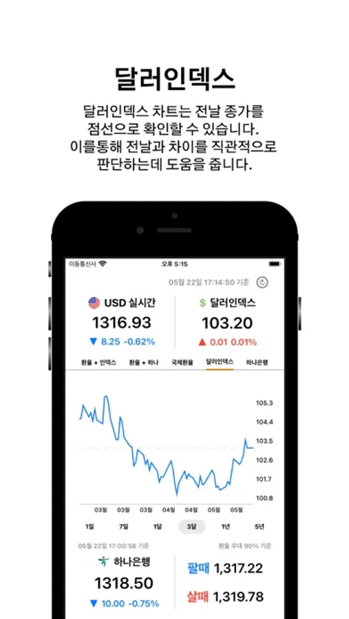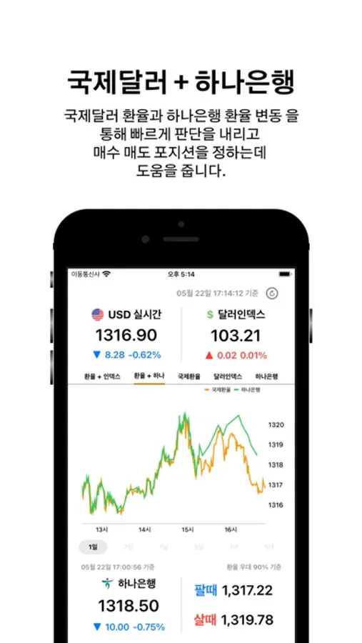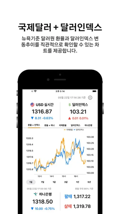 내가 필요한 정보를 쉽게 찾을 수 있고, 국제 달러원, 달러인덱스, 하나은행 달러원 차트를 비교해서 볼 수 있어서 유용합니다.
