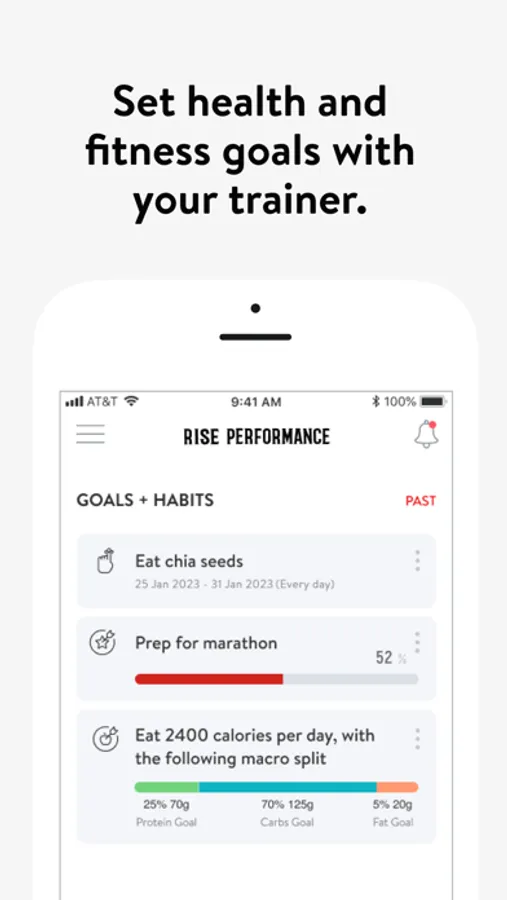 With the Rise Performance Training App, you will have access to workout programs designed specifically to help you reach your fitness and health goals! You can follow & track your workouts, your nutrition, your lifestyle habits, measurements and results–all with the help of your coach.