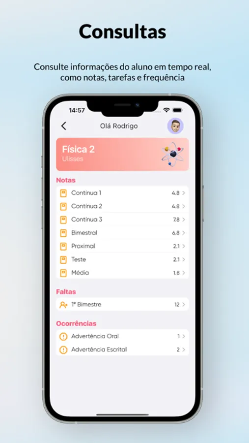 Aplicativo do D'Incao Instituto de Ensino, onde os alunos podem consultar notas, faltas, ocorrências e demais informações pedagógicas.
