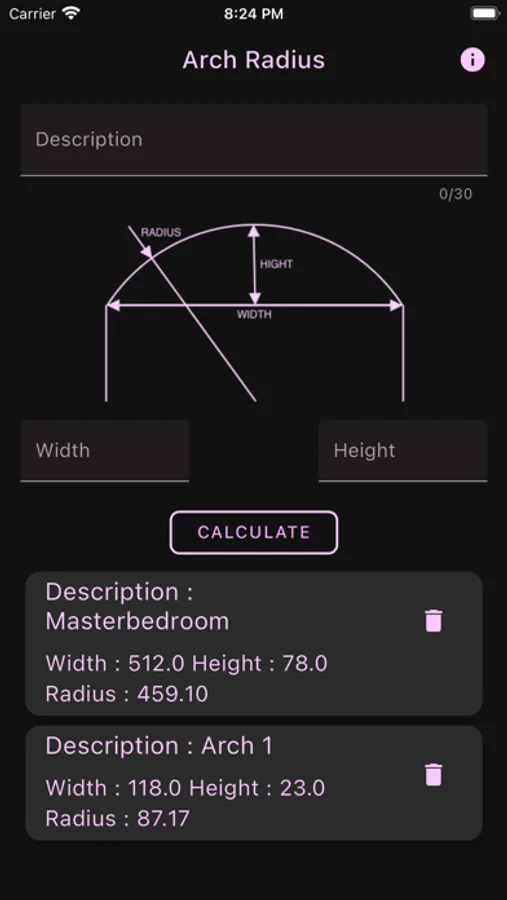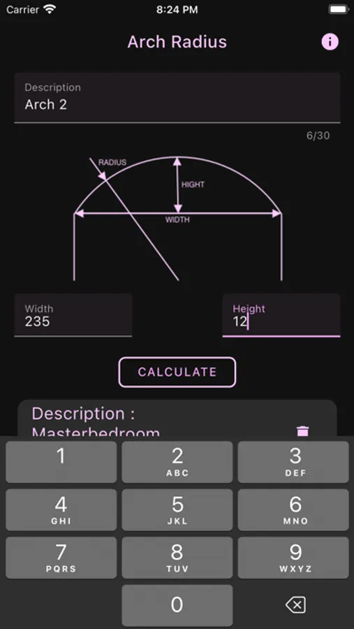 It is designed for use on the iPhone too quickly calculates the radius of an arch.