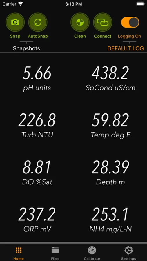 • Snapshot: a Snapshot is one line of data (date, time, parameter readings) that is logged into your display device’s Snapshot file