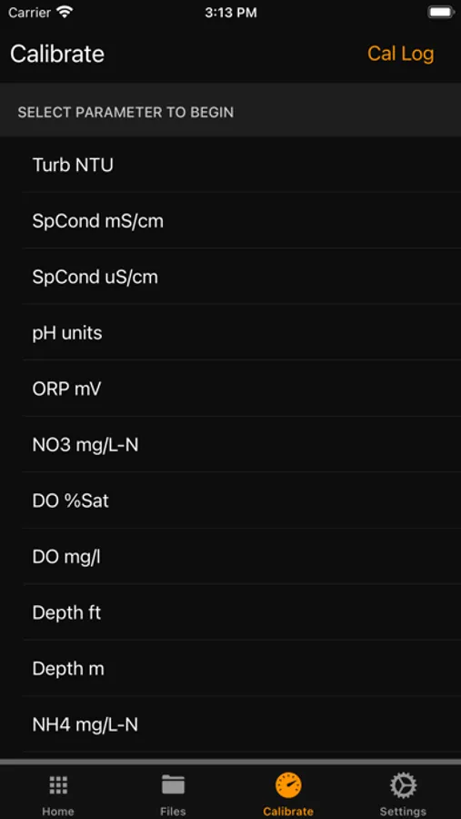 • Calibration function with ability to email the Cal Log: Use Calibration Logs Screen to see a list of Cal Logs stored in your device for the connected HyQual and any Cal Log that has been downloaded from other probes to the memory in your display device.