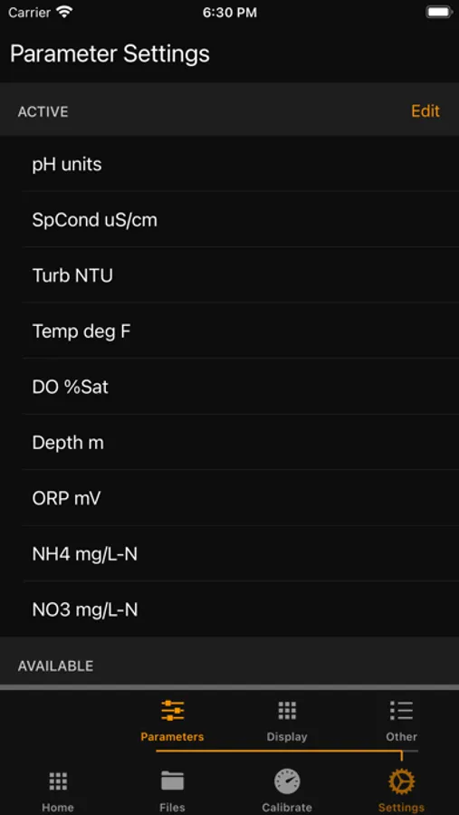 • Parameter settings: list of Active and Available parameters. Add, Edit, Change order, Remove.
