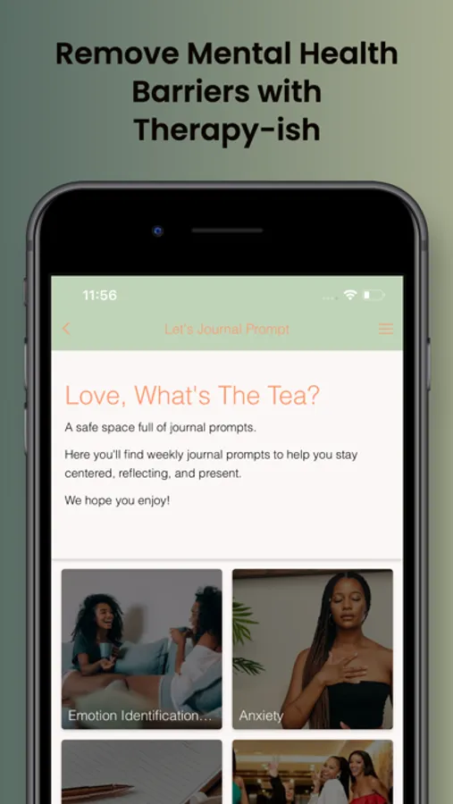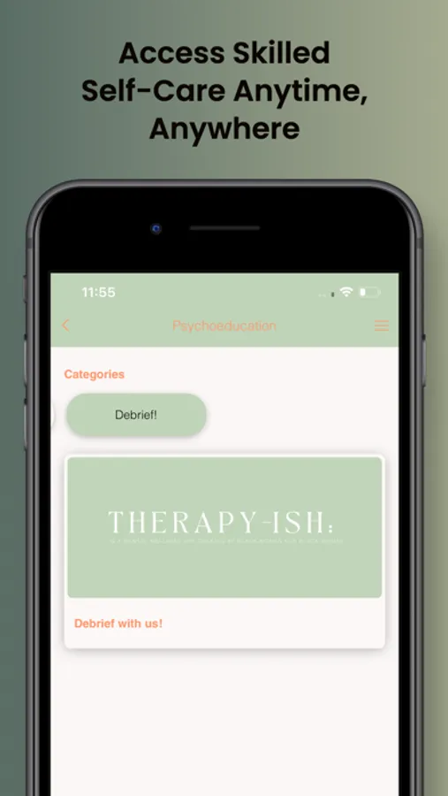 Therapy-ish is an app for the culture. We bring the therapy(ish) to you. At your fingertips, you'll have access to a wealth of information, resources, practices and exercises to help hone skills you've learned in therapy OR even give you a snapshot of what therapy COULD look like.