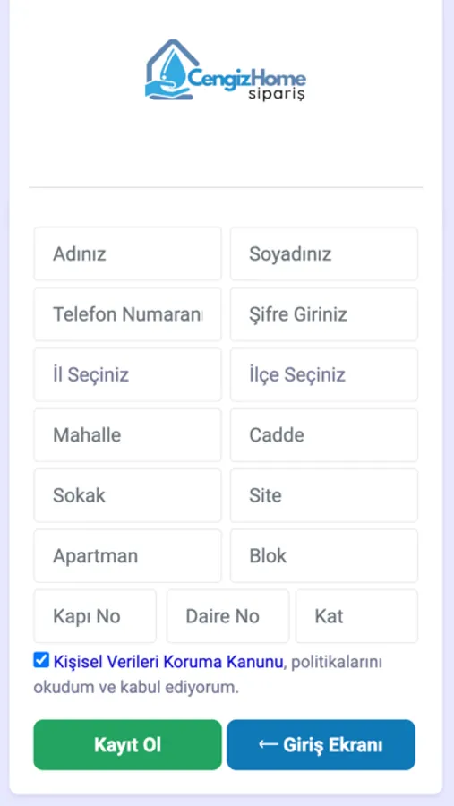 Cengizhome Sipariş Mobil Sipariş Uygulaması ile sipariş vermek artık çok kolay! Damacana, Cam Damacana, Pet ve Bardak Su siparişlerinizi uygulamadan verebilir, kredi kartı ve kapıda nakit ile ödeme yapabilirsiniz.
