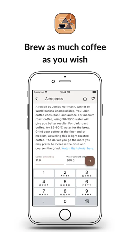 - Use the coffee calculator to tweak the coffee or water quantities in the recipes, allowing you to brew as much coffee as you desire.