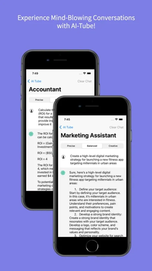 Our app provides a seamless and user-friendly interface that allows you to interact with various virtual assistants for different purposes. Whether you need assistance with scheduling, reminders, weather updates, language translation, or general knowledge. AI-Tube has everything you need, you can even share the answers and ask to speak it in your language.