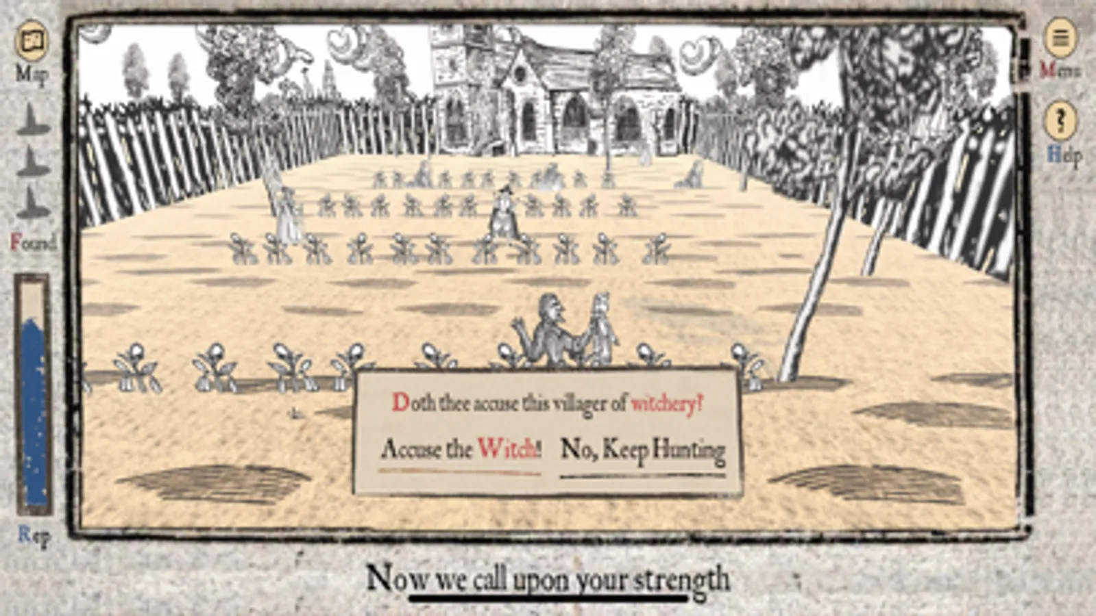 You have been hired by the Witch Finder Generall to help hunt down the witches who are terrorizing the towns of South Grislada. Unfortunately for him, you are actually a witch looking for recruits to join your coven.