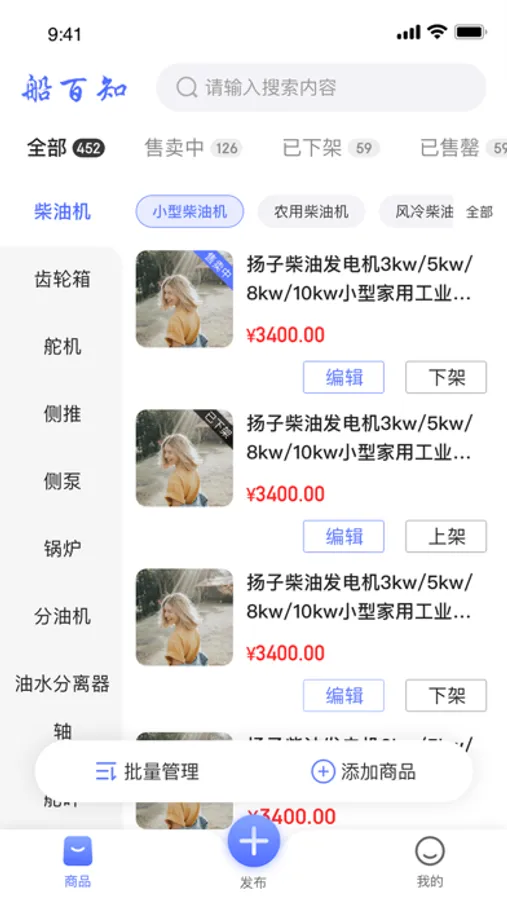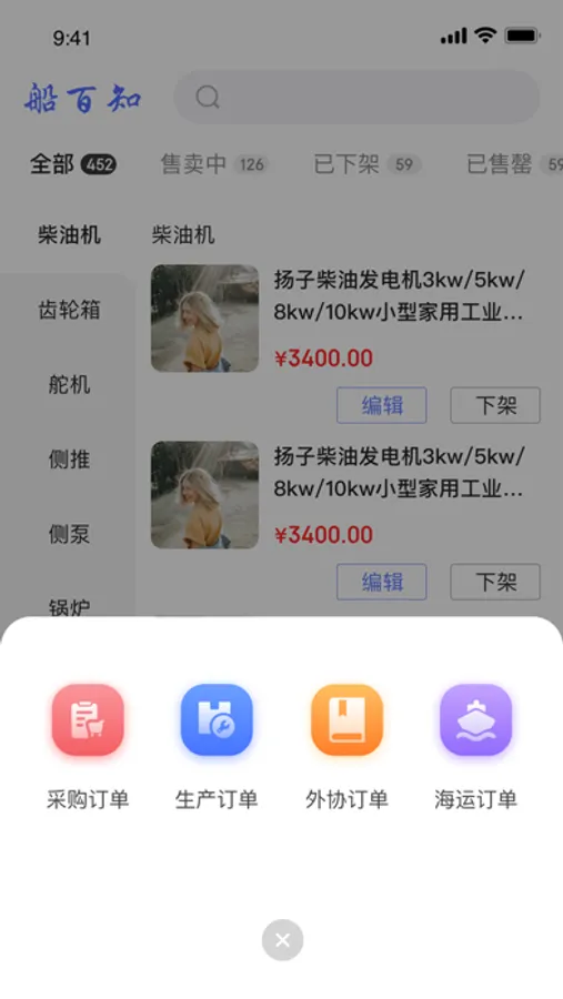 “船百知-商家APP”商务平台拟打造全国甚至全球的船舶制造、技术服务、信息、船舶配件、二手船舶交易,致力于为入驻到平台的商家提供更便捷的店铺管理,方便商家管理员实时查看并操作店铺数据。主要功能包含商品管理、订单管理、店铺信息管理、订单需求管理等功能。其中商品管理可进行新增、编辑、上下架等操作;订单管理可直接进行后续订单处理以及订单状态的查看;店铺管理可更新轮播图、店铺介绍、店铺地址等;订单需求可实时发布新订单,包括采购订单、生产订单、外协订单、海运订单。订单需求可实时查看,并跟进用户的报价情况进行留言沟通,同时平台客服推荐、撮合成交。