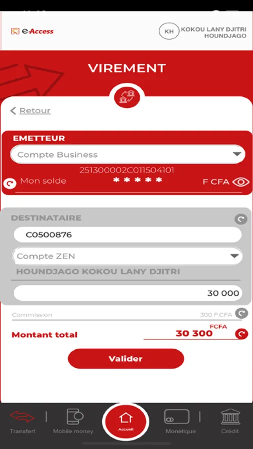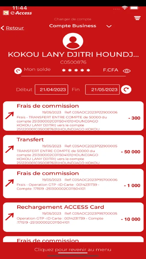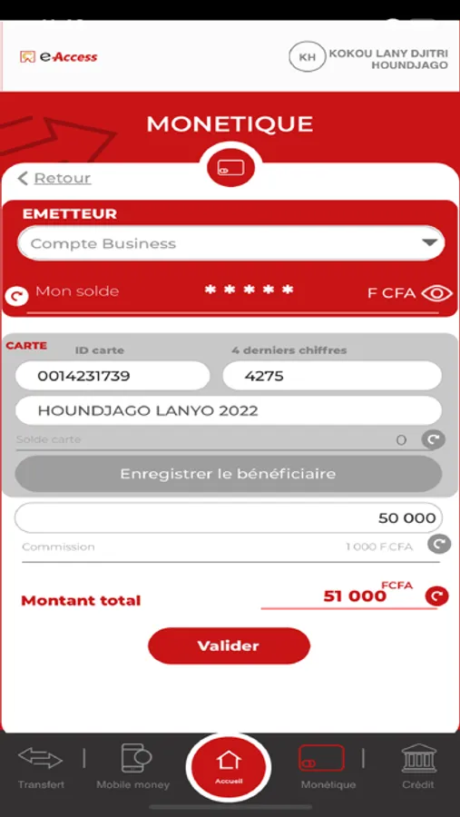 - Le rechargement la carte bancaire « Access Card ».