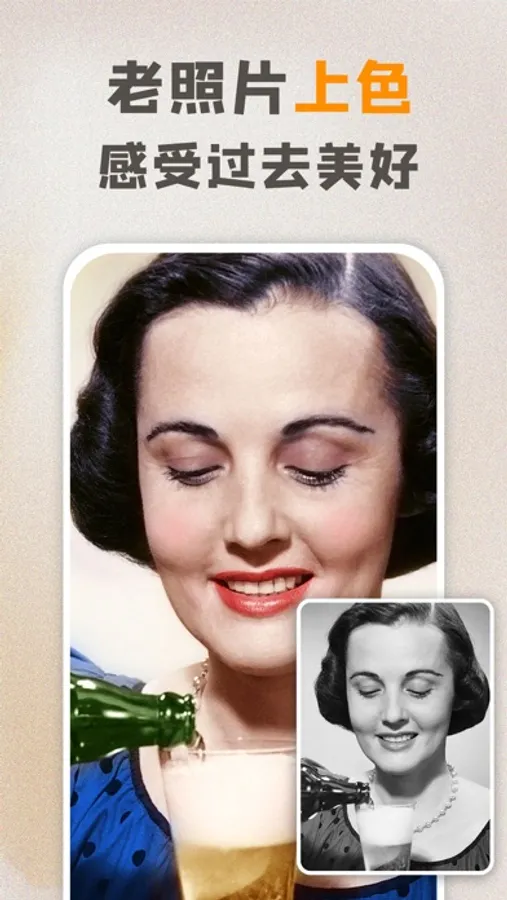 【黑白照上色】 使用人工智能技术,通过大量老照片上色案例,一键精确还原符合场景的颜色。