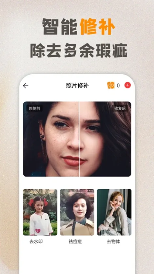 【破损照片修复】 对于破损、划痕、折痕、污点或破坏严重的照片,保留原始照片的形状、细节、神态。精细化处理修复破损照片,让图片变清晰,让照片焕然一新。
