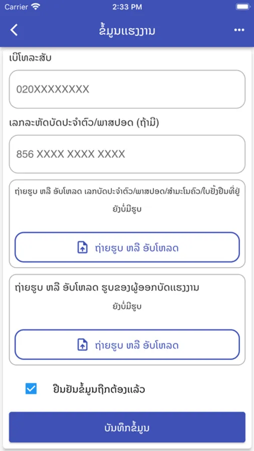 "LMI Laos Mobile Application" is a modern application designed to register the information of Lao workers and foreign workers