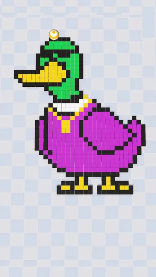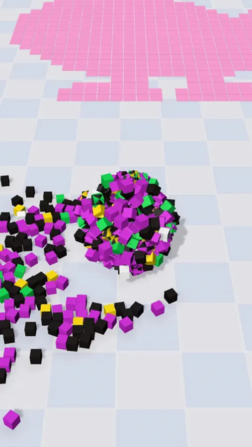 Sticky Pixel is a game where players control a ball to stick to small cubes, and then roll the ball onto a canvas to fill in pixel art. The goal is to complete a beautiful pixel art. Players can upgrade the speed and weight capacity of the ball to transport more pixel blocks each time.
