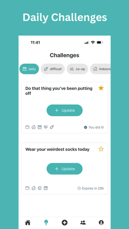 - Daily Challenges: Discover engaging challenges, save favorites, or accept those sent by friends to spark excitement and exploration.