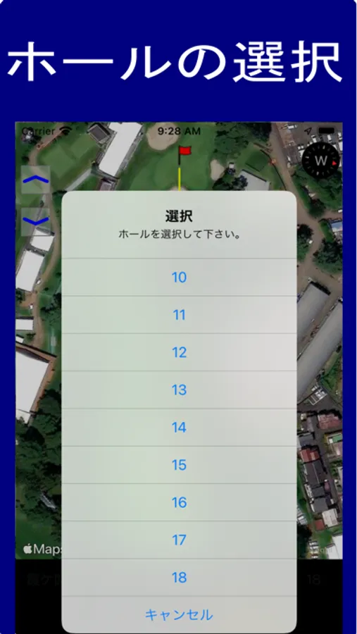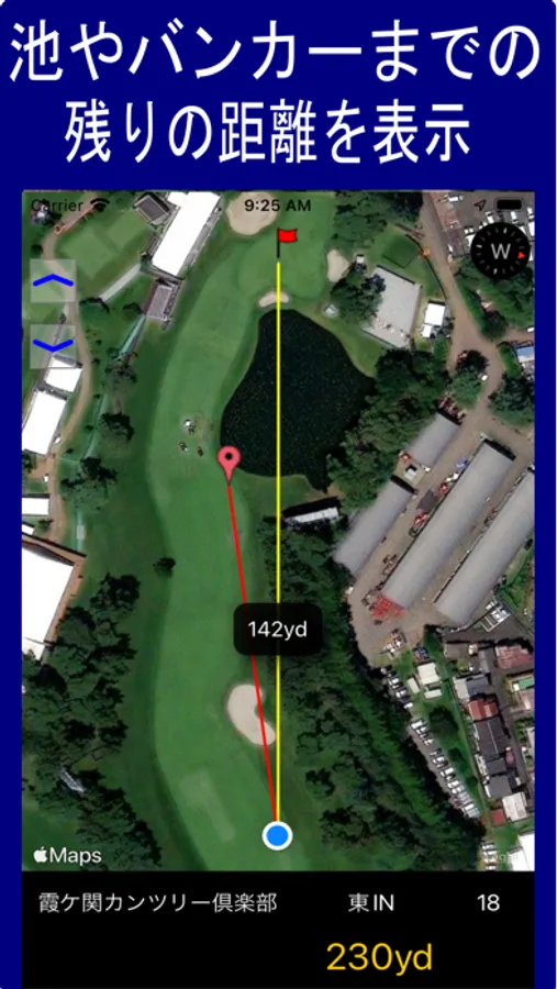 今居る位置からグリーンまでの距離を計測するアプリです。