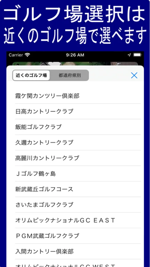 ゴルフ場をタップして目的のゴルフ場を選択します。