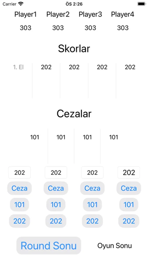 101 oynarken tüm bilgileri uygulamaya girerek, hem veri giriş aşamasında hem skorları toplama aşamasında kolaylık sağlamanız için üretilmiştir.