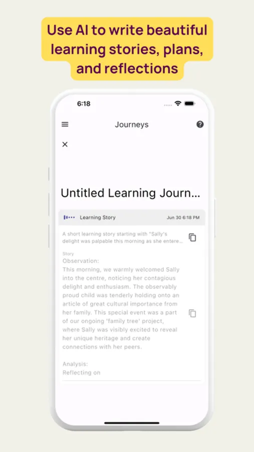 LoveHeart is an AI educator-aide that uses your observations to help you understand a child's development, how to extend learning, and writes learning stories, daily journals, learning plans, reflections, and summative assessments in seconds.