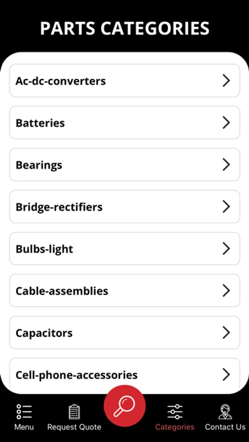 Our app serves components for a variety of defense, aerospace, automotive, industrial, commercial, and medical industries.