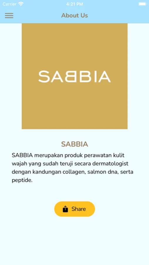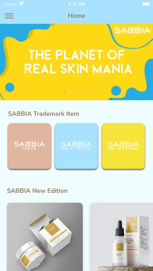Aplikasi SABBIA memungkinkan siapa saja untuk bisa berbelanja produk skincare original dari SABBIA, serta dapat menemukan produk-produk paling baru yang akan di jual secara special hanya di Aplikasi SABBIA.