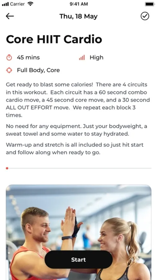 App also uses Apple Health to track energy burned and heart rate during a workout session, if an Apple Watch is used.