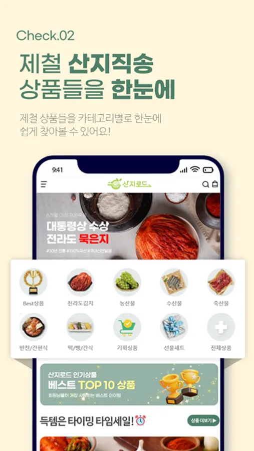 - 산지로드에서는 과일, 채소, 수산, 축산 전국 팔도 식품 등 다양한 카테고리 상품을 최저가로 만날 수 있습니다.