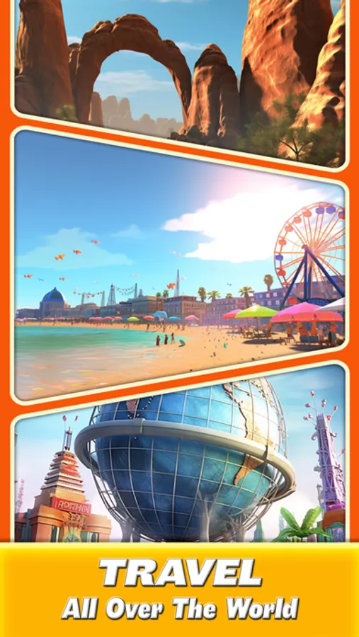 The game is full of brain teasing puzzles! Enjoy crazy puzzle matches with beautiful locations around the world!