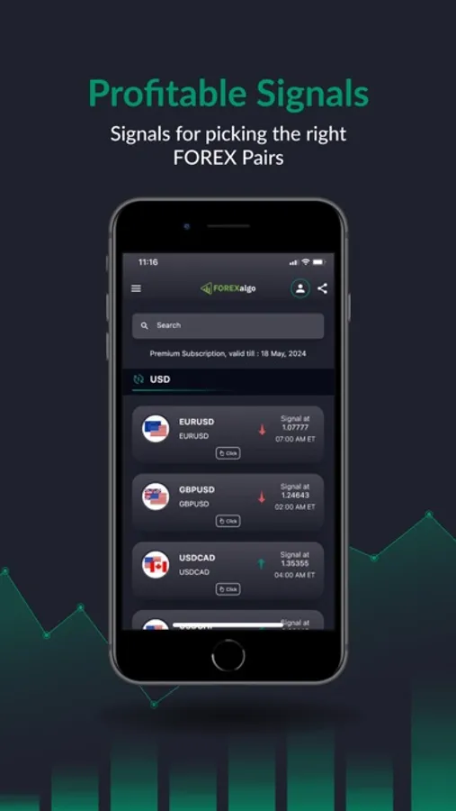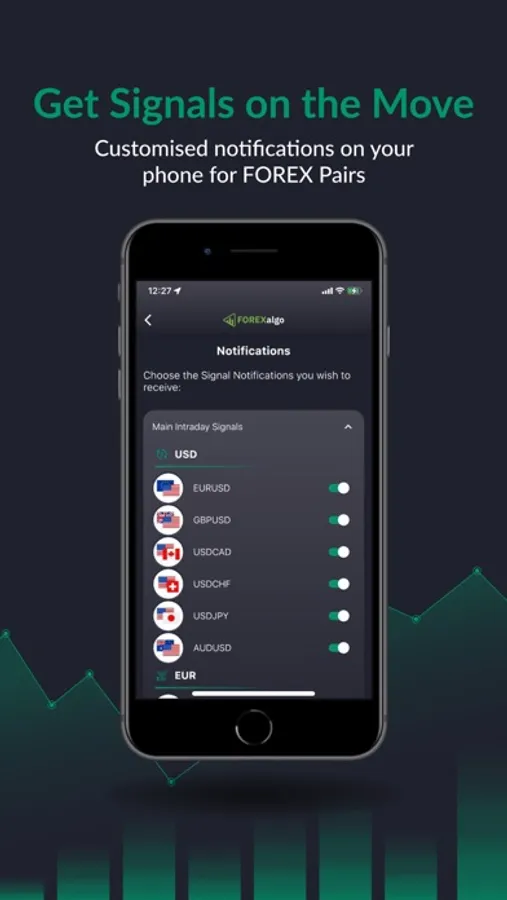 FOREXalgo is an AI powered FOREX trading signal mobile app for FOREX Traders. You can trade FOREX pairs like EURUSD, GBPUSD, AUDUSD, EURJPY, USDJPY, USDCAD, USDCHF and EURCHF with the trading signals provided in this mobile app. These are top traded FOREX pairs on US Exchanges.