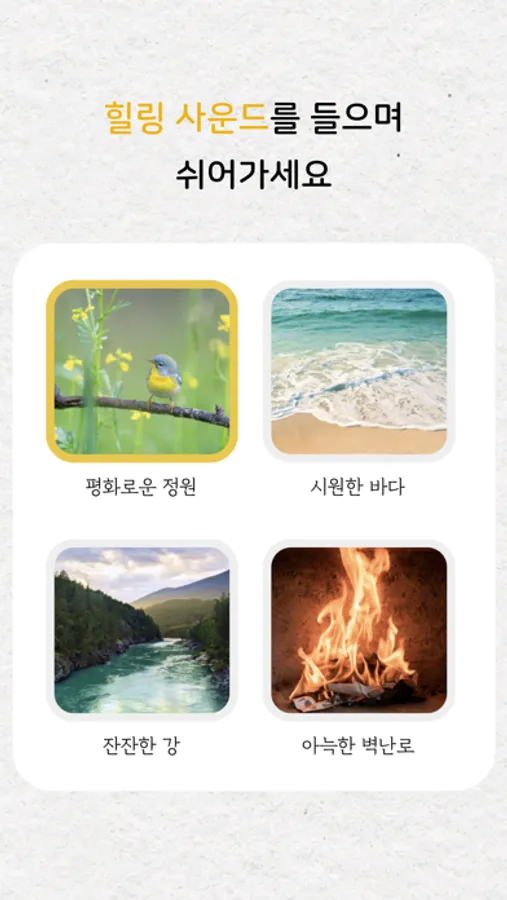 : 힐링 되는 배경 소리를 들을 수 있어요.