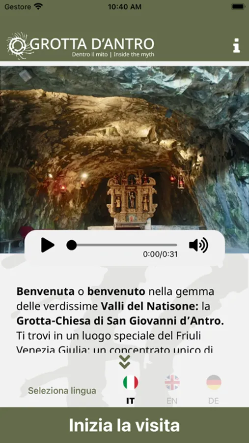 L’audioguida propone in modo completo e in tre lingue (italiano, inglese, tedesco) una visita della grotta-chiesa d’Antro, o Landarska Jama, gemma turistica del Friuli Venezia Giulia.
