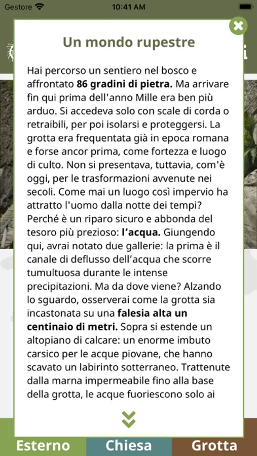 Si consiglia di scaricare la App prima della visita, sia per prepararsi adeguatamente alla scoperta della grotta-chiesa, sia per ovviare a eventuali sovraccarichi della rete Wi-Fi disponibile sul posto.