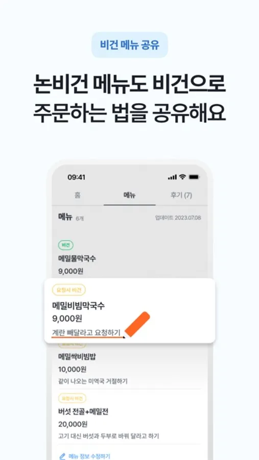 비건인 메뉴와 가격, 논비건 메뉴는 비건으로 주문하는 방법을 제공해요.