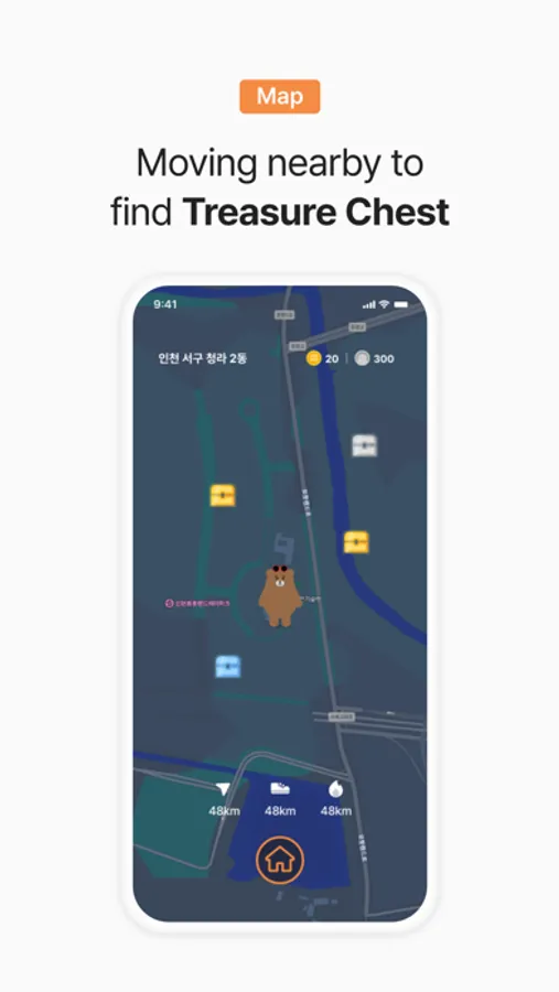 Find treasure boxes around you and receive tokens and bear boxes!