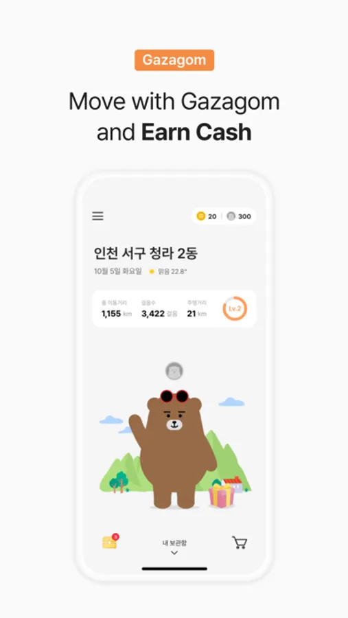 You can check the number of steps you walked with the Gaza bear and the calories you consume and get a reward!