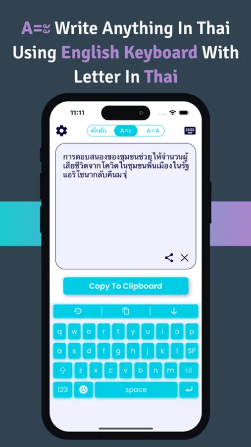 With Thai Keyboard, can write in the beautiful Thai font in any application on the iPhone. Write your unique profile name on in any social media apps using Thai font keyboard which can be added easily into your iPhone keyboards.